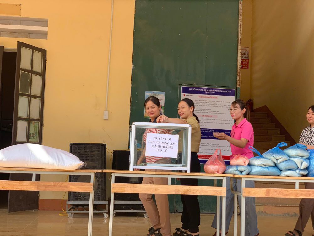 Cán bộ, giáo viên và học sinh Trường THCS Số 2 Thượng Hà hướng về đồng bào vùng lũ và học sinh vùng cao