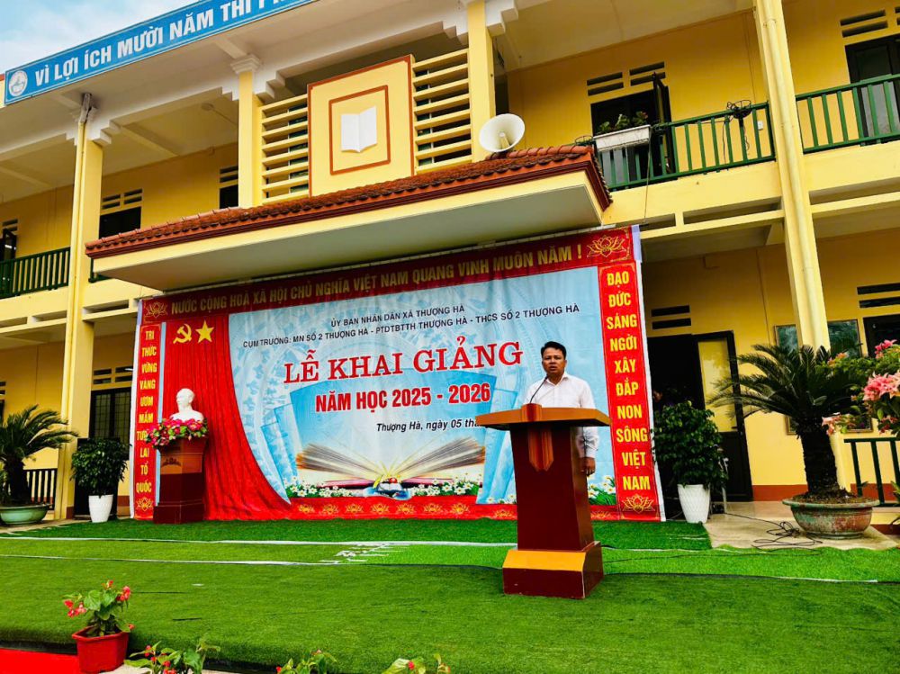 Lễ khai giảng năm học 2025-2026 của cụm liên trường Mầm non số 2 Thượng Hà, Phổ thông Dân tộc Bán trú Tiểu học Thượng Hà, và Trung học Cơ sở số 2 Thượng Hà đã khép lại trong niềm hân hoan và khí thế mới. Với sự đồng hành của chính quyền địa phương, sự nỗ lực của đội ngũ giáo viên và tinh thần học tập của các em học sinh, năm học mới hứa hẹn sẽ gặt hái nhiều thành công, góp phần xây dựng một nền giáo dục chất lượng, đáp ứng yêu cầu phát triển bền vững của quê hương Thượng Hà.